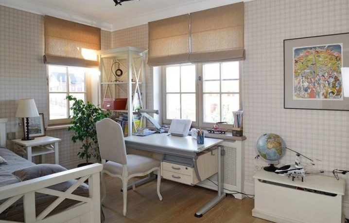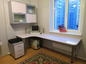 The fact is that the table directly at the window will be illuminated by the sun, which creates glare on the surface of the furniture, thereby creating an additional strain on the eyes. In addition, a first grader too often will be distracted from lessons on what is happening outside the window. If you plan to buy a table with upper shelves, it is better to choose the corner option, in which the writing part will be located by the window, and storage space will be turned to the wall.