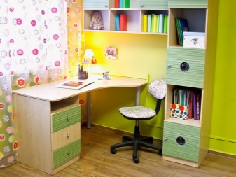 Corner school desks should not have a tabletop that is rounded off at the edge. This prevents the child from taking the correct position during work. The exception is made by models which have one edge of a table-top not less than 1,2 meters long, there and notebooks are displayed.