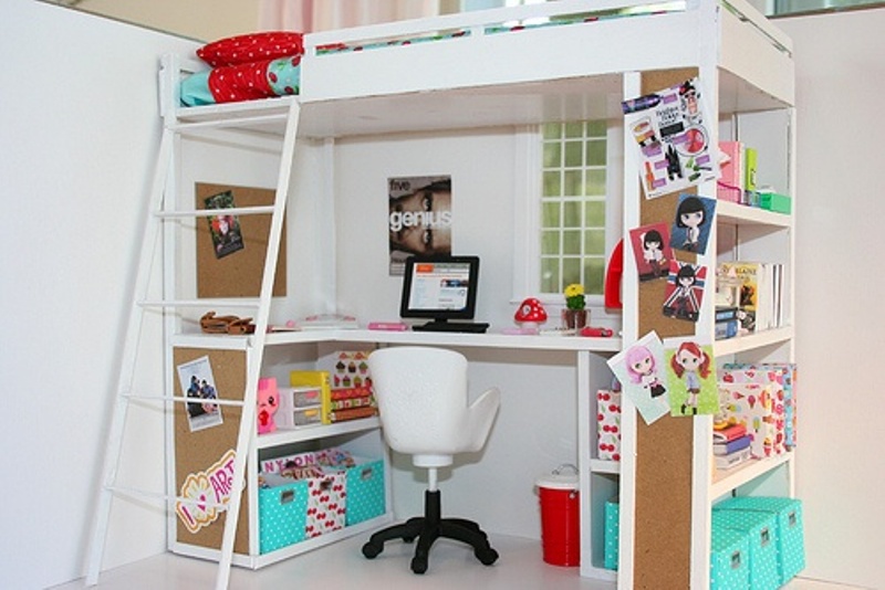 Do not place the table so that the child sits with his back to the door.Psychologists have proven that this causes anxiety and the inability to concentrate. The same applies to the writing desk for first-graders, located under the loft bed.