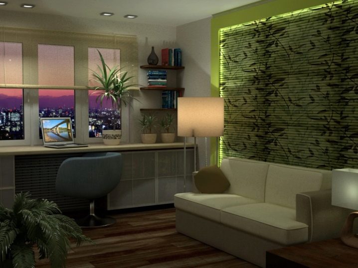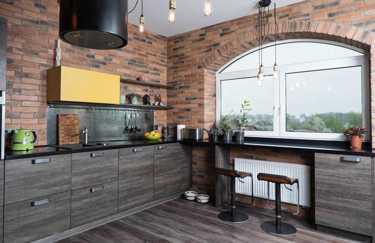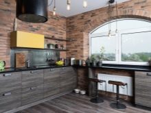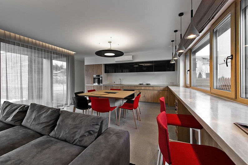 Another feature is the placement of the design. In the kitchen, a table-sill can replace a dining table or become a good working area, pleasing with sufficient lighting without additional local sources.
