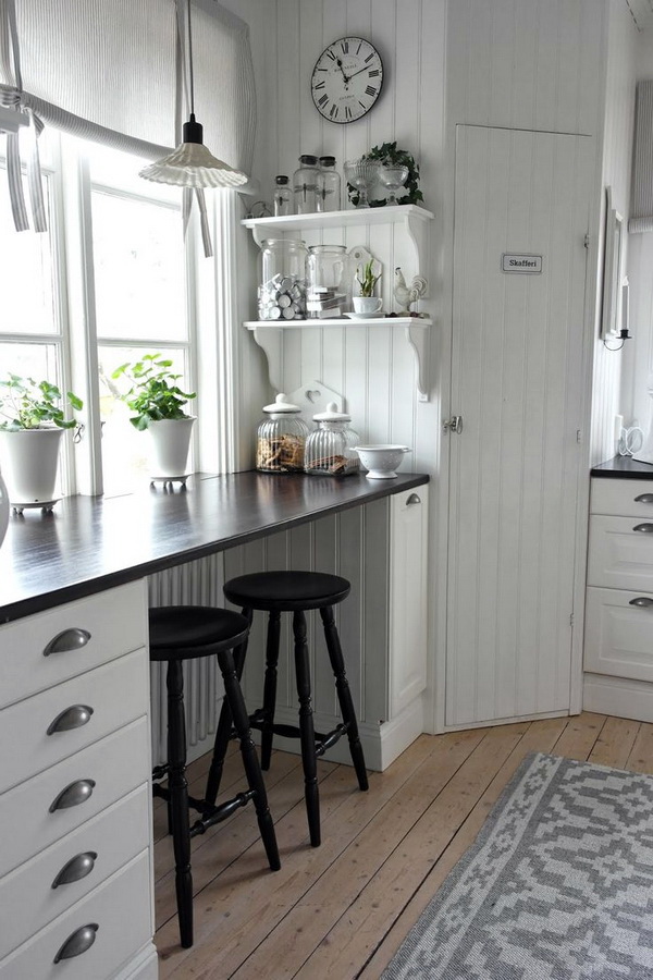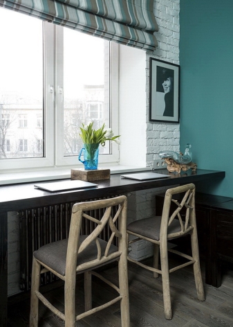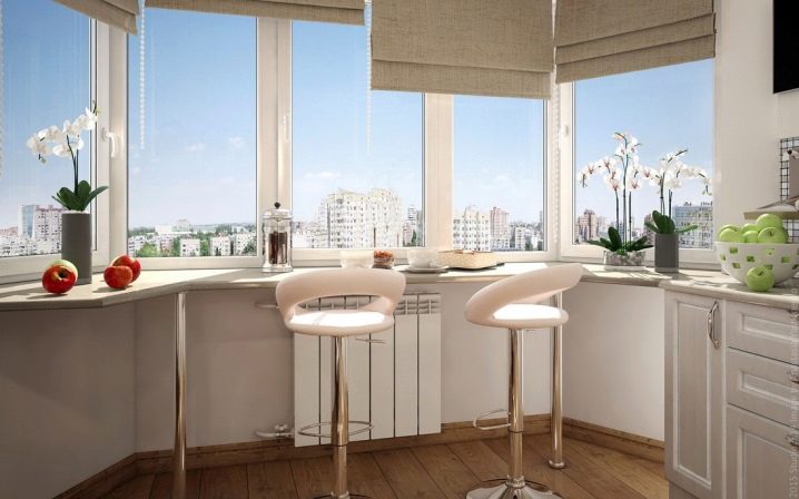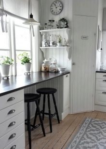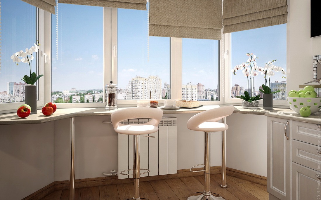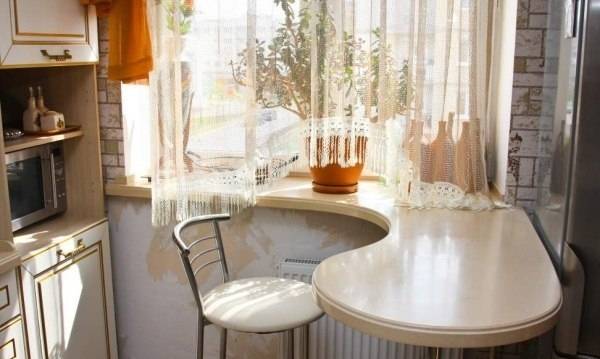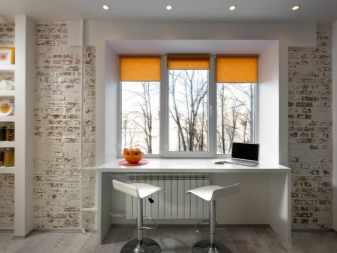 It is also worth noting that the tabletop instead of a window sill does not tolerate long curtains and curtains, and therefore it is most reasonable to refuse from usual heavy fabrics. An alternative for tabletops can be rolled Roman blinds, blinds or short romantic curtains.