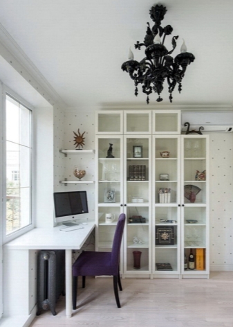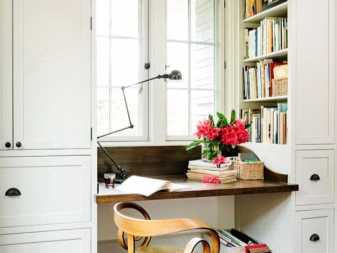 The table in the window opening does not take up much space, allowing you to combine it with a cabinet in the same color scheme.