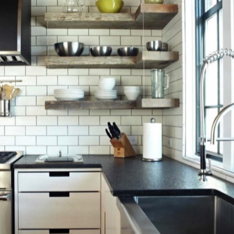 In search of the most durable version, you can pay attention to the metal models. It is worth noting that the tabletop, made entirely of metal, has not yet been invented, but in some cases it is impossible to do without steel elements. So, if the countertop is part of the working area in the kitchen with a sink, the place for storing dishes is made of metal, since such raw materials do not deteriorate and are not scratched, it is easy to wash.