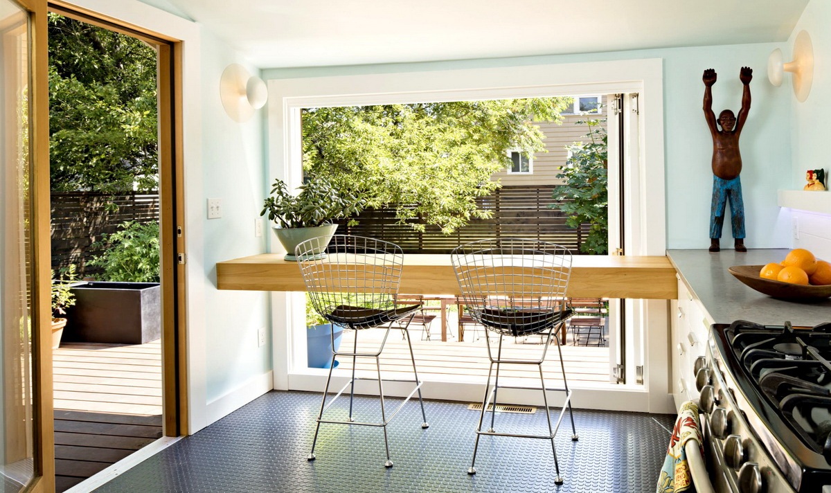 The one-piece model represents a static and immovable interior element by the window, while the hinged sill table can recline downward, freeing up space if necessary.It is necessary to dispel all the myths that the sill built into the table can save huge areas. About 50 cm of freedom - this is all that a table near the window is capable of, but according to the designers, it is important to love and appreciate every inch of your home, if there is such an opportunity, and it does not affect the stylish appearance of the room.