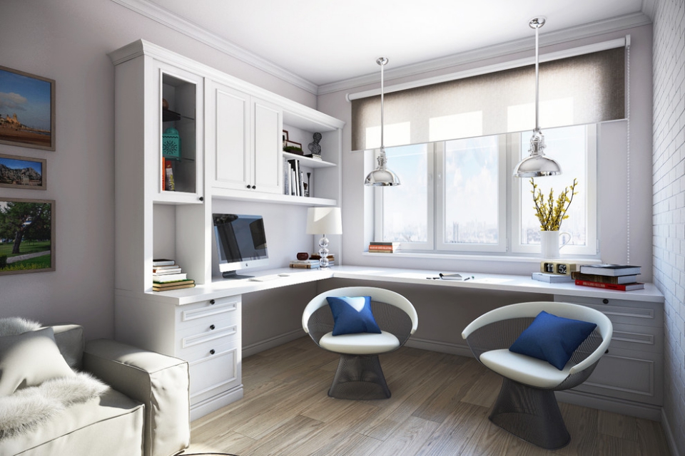 The white long table-sill is perfect for arranging the working space for one or two teenagers.Conciseness, minimalism and capacity characterize this option.