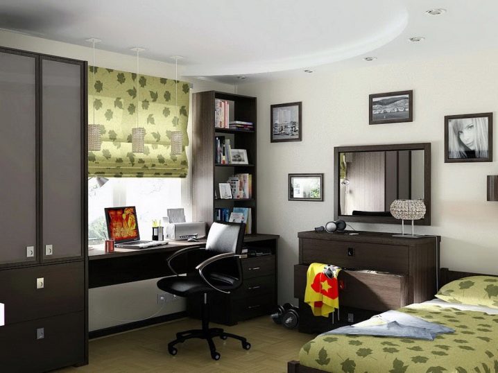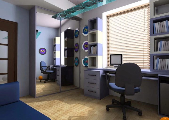 The table in the room of a teenager differs significantly from the option for the baby, first of all, by its parameters. For a teenager, the long tabletop is the correct length, because not only a computer will be placed on it, but also textbooks, magazines, CDs and many personal details. The width at the same time may be small, because the children's room of a teenager and without it will be replenished with dimensional furniture, coming to replace the cribs and sofas. The worktop of a teenager should not prevent him from breathing freely and feeling comfortable in his personal territory. Straight sheets of plastic or wood will do the job in the best possible way.