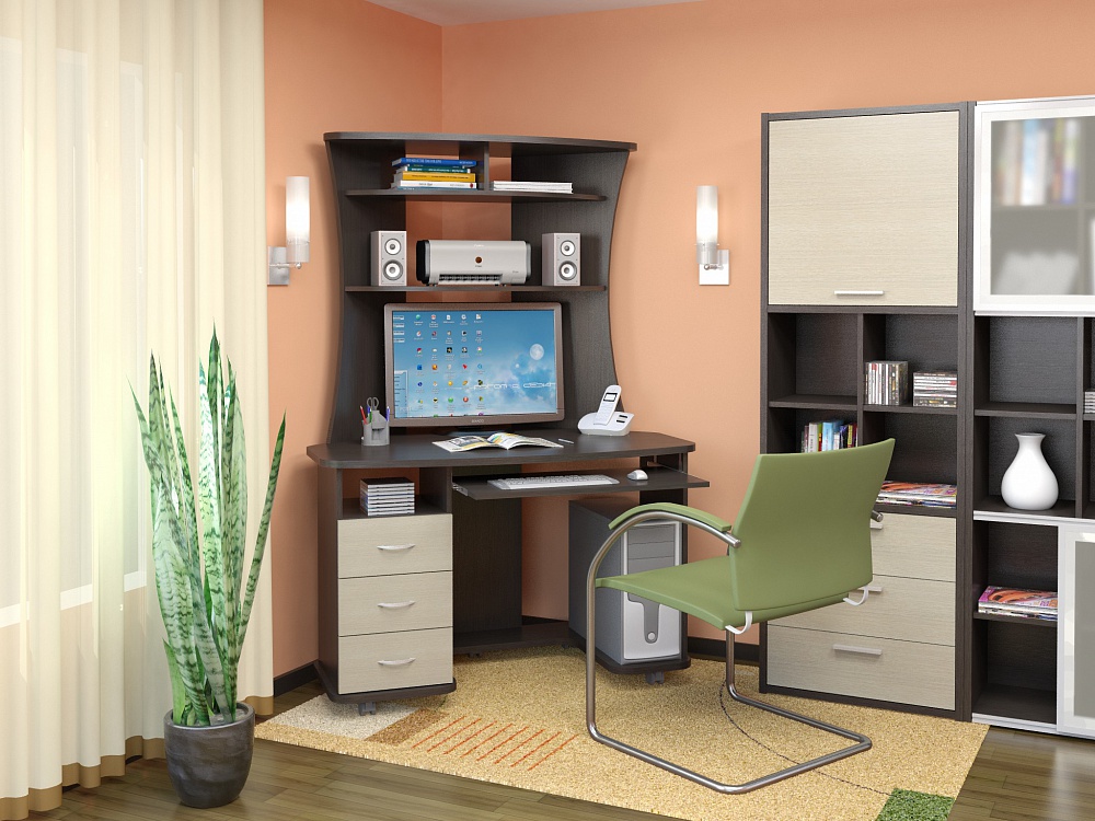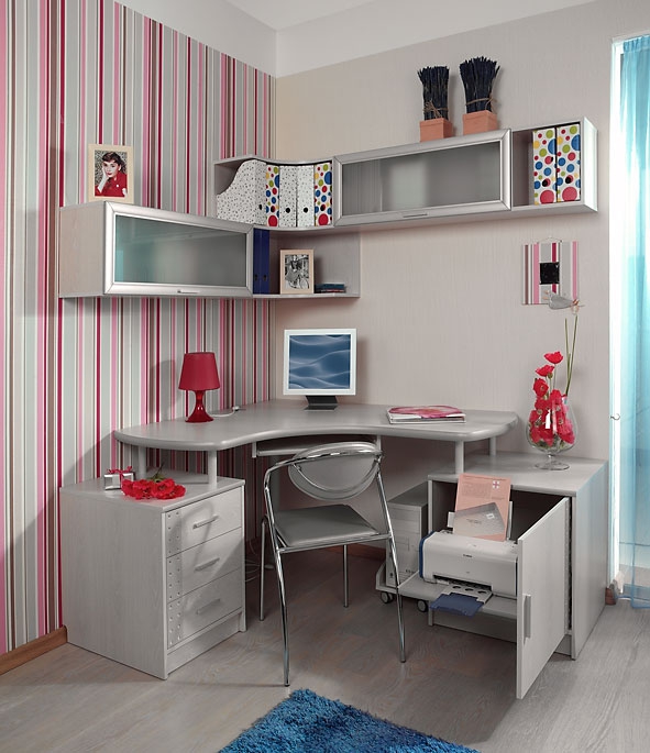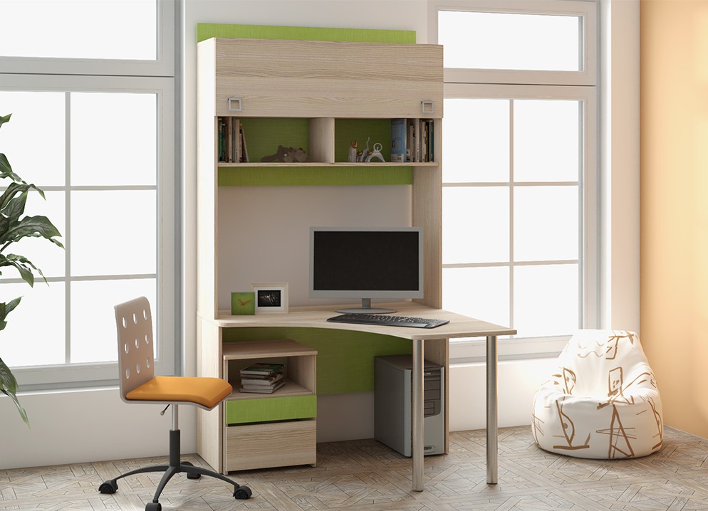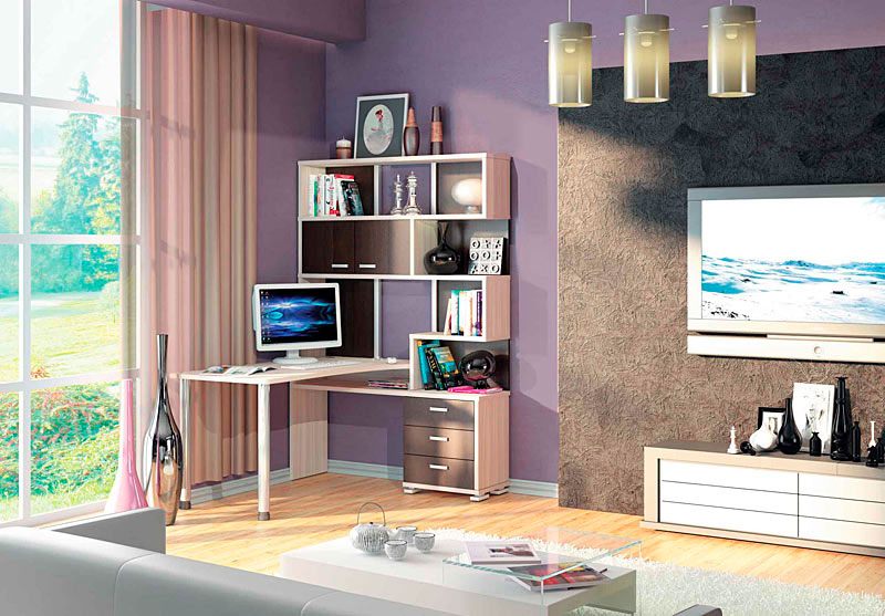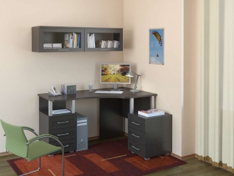 Without a desk can not do if in your home there is a business office or a room in which the student lives. Corner desks are often equipped with various functional additions. Classic are corner designs with a bedside table and a wardrobe. Above such a workplace, many people install shelves (their design can also be angular).