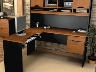 Especially popular and functional deskswhich can also be used as computer. In them, one half is reserved for written work, and the other - for the use of a laptop or desktop PC. As a rule, the second part of such furniture is complemented by compartments for storing disks and various office equipment.