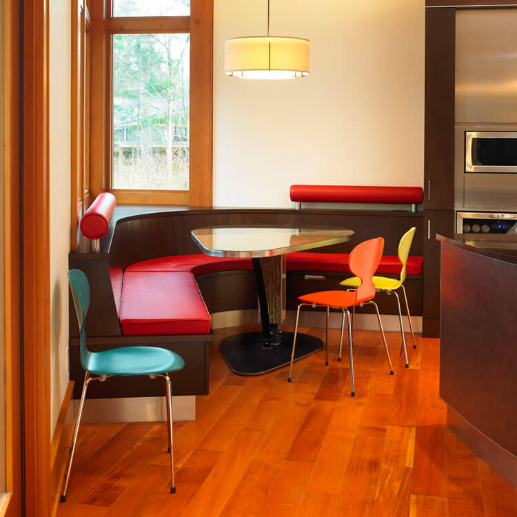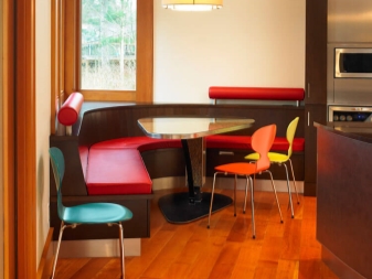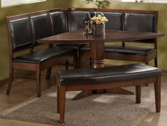 - Dinner Zone. Such types are more spacious, so they can comfortably accommodate up to 8 people. Such furniture is installed along the wall and often consists of a sofa, table tops and chairs.