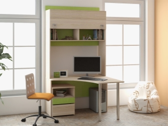 Thanks to this structure, it is possible to speak with confidence about the practicality of such desks.Working and learning behind them will be as convenient and productive as possible, since all the necessary components will be next to the user. It can be textbooks, notebooks, magazines and other similar things.