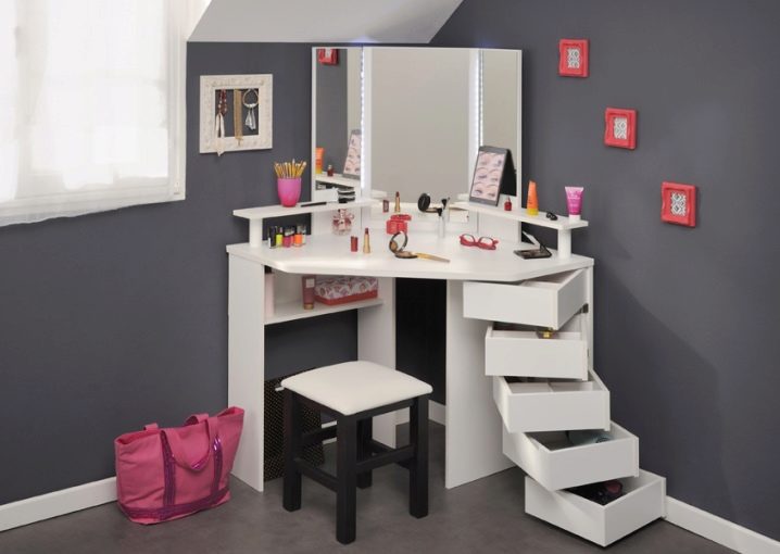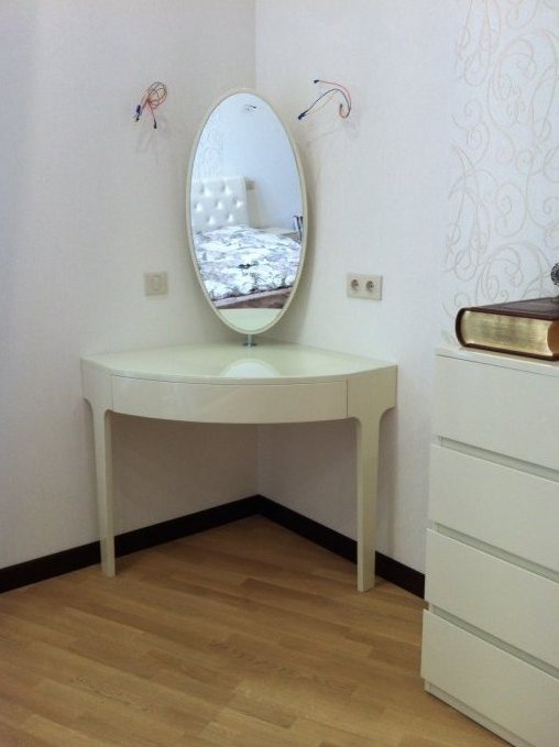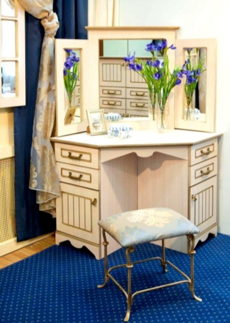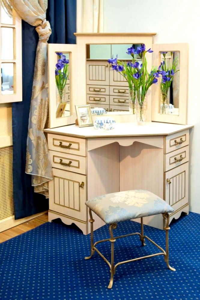 Comfortable dressing tables are most often placed in bedrooms. However, such furniture in the corner design is much less common classicalrectangular and square options.
