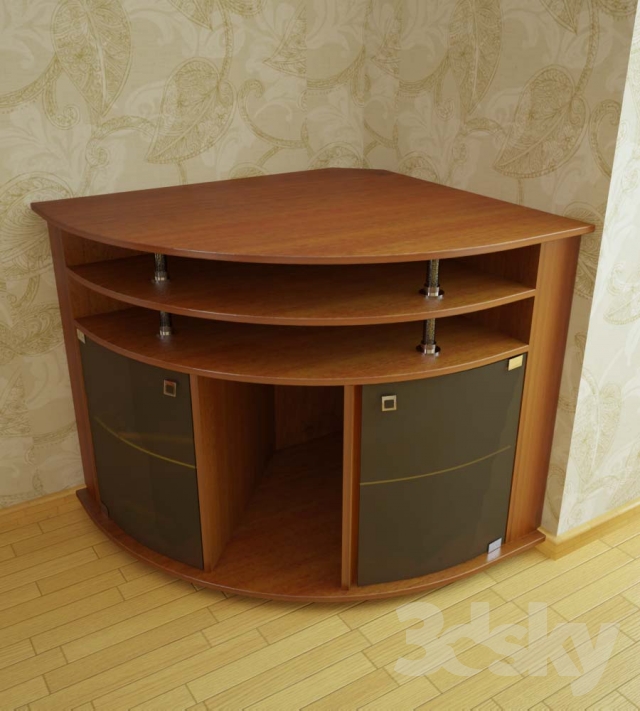 For the living room you can pick up a small corner table for the TV. It can be closed or open. These options are also made of wood or glass.