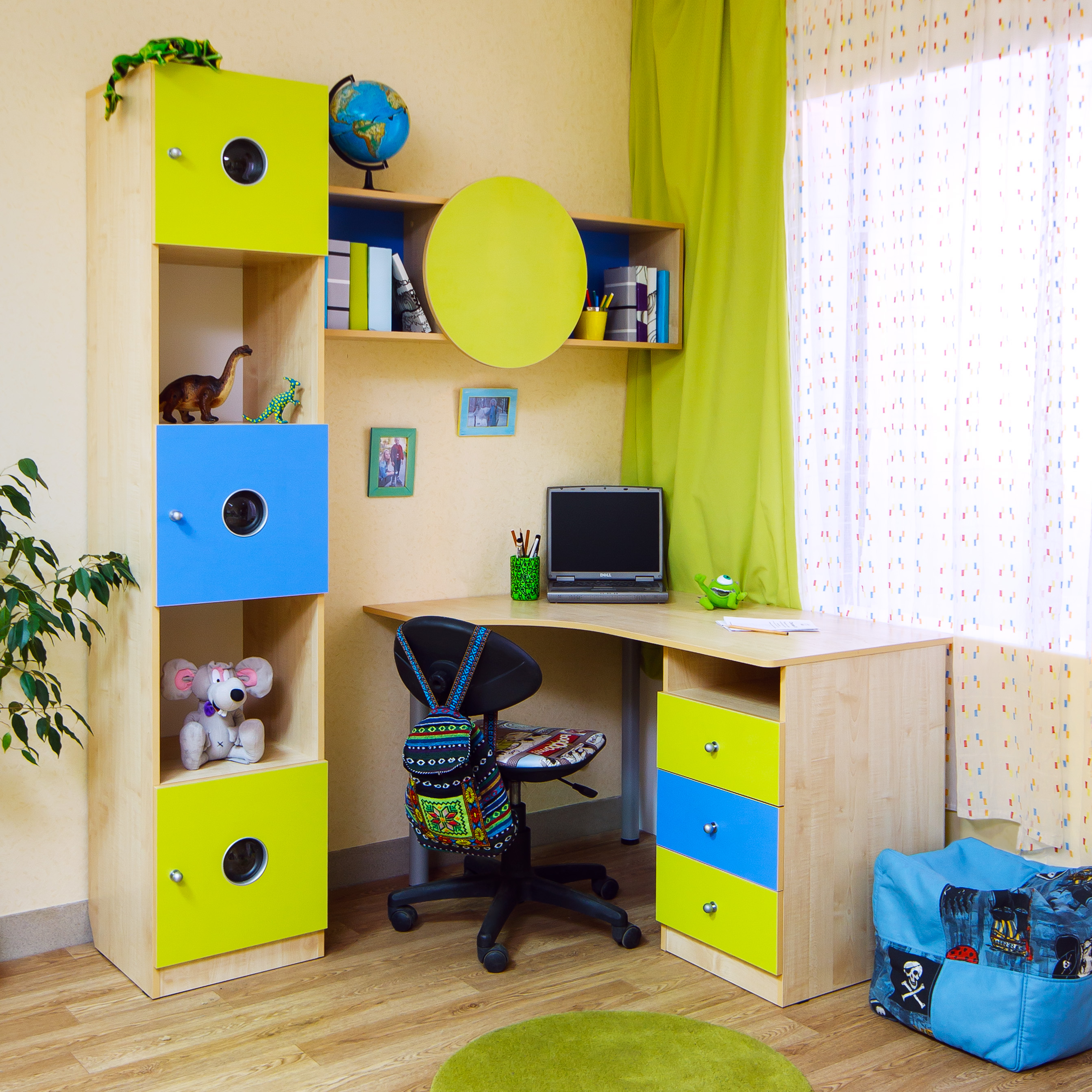Modern manufacturers produce student corner tables that have an interesting and unusual design. This can be a model of bright and juicy color or a laconic design in a futuristic style for a teenager.