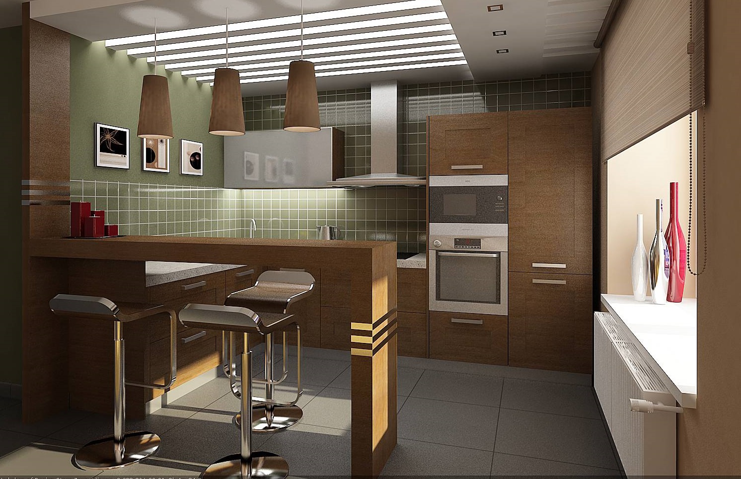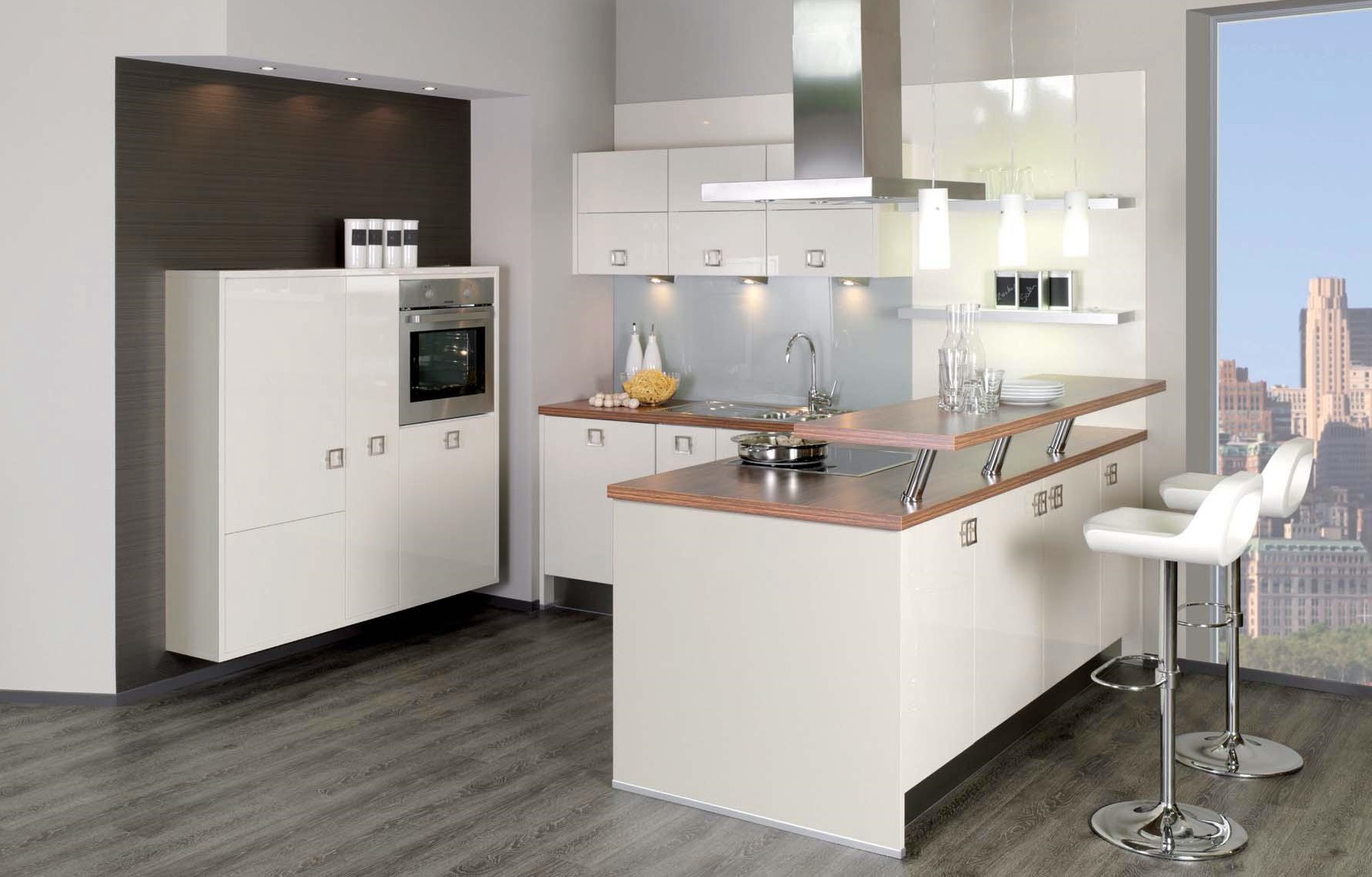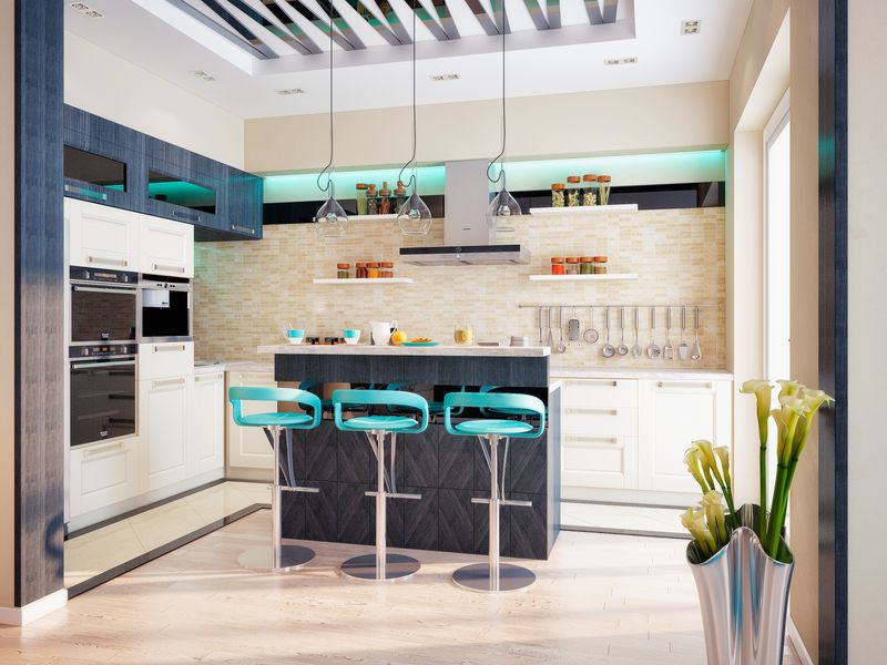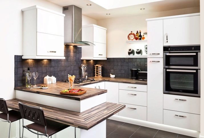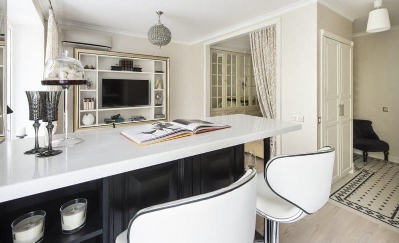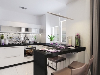 It should be noted that the bar tables most often prefer to be installed in the kitchen by representatives of the younger generation, since they serve as an excellent place for gatherings in the company. Thanks to this prefab design, the kitchen is transformed into a modern room.