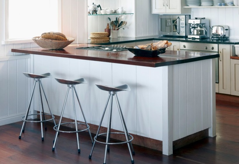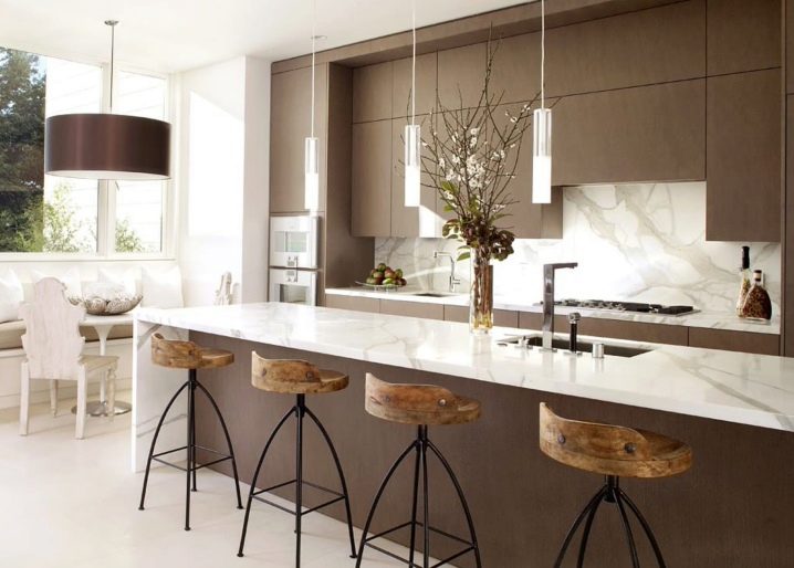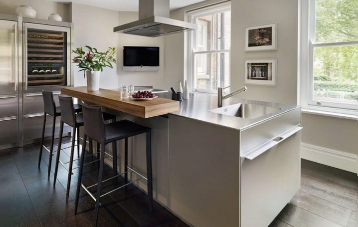 The kitchen should be comfortable, so when planning it, it is necessary to foresee the correct location of the furniture. This also applies to the bar table. individually, under the order. As a rule, high bar tables look beautiful with wooden: