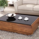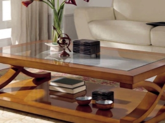 A wooden coffee table will fit into any interior. - a popular and practical option. It is important to choose the shade of the tree for a harmonious combination with other furniture in the room. It is better that such a model was made in the appropriate style.