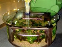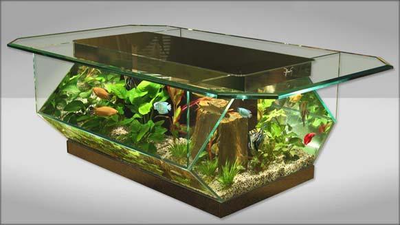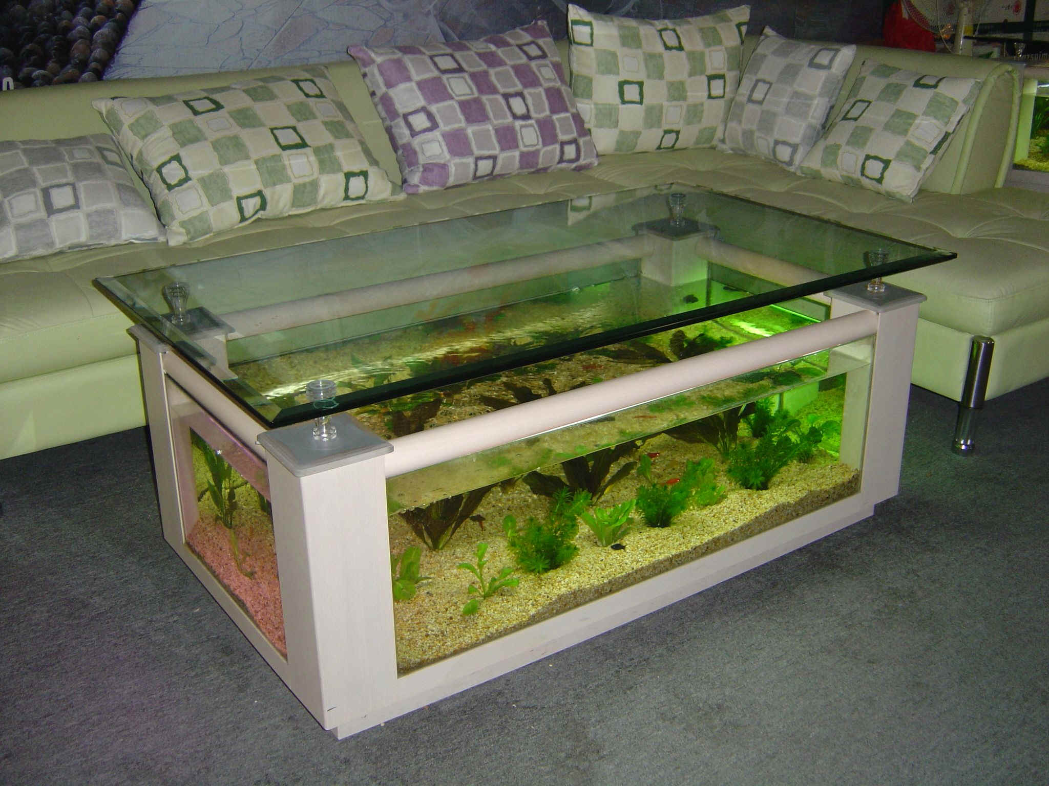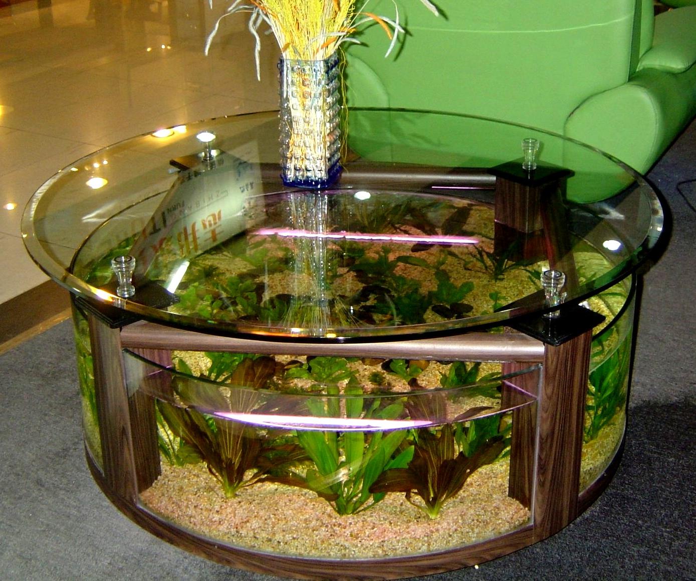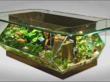 Coffee table with aquarium table can impress anyone. The aquarium is not small, real, fish swim in it, live plants. Undoubtedly, this detail in the interior will be the most memorable.