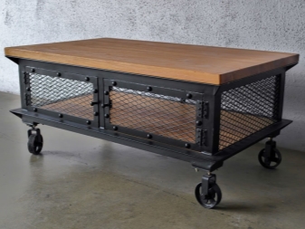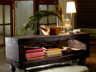 The direction of the loft today is extremely popular in interior design. In this style and perform furniture. A coffee table in this style should have all the features of an art object. The appearance of such a product is different originality: for example, pipes made of metal in combination with glass or trimming trees, exactly cut off and forming a plane. Other extravagant options may be used.