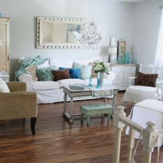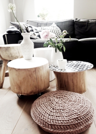 Eco style gaining popularity lately. Here you can use wicker coffee tables, baskets, which will create a feeling of a terrace. As an exclusive idea, fans of this style can use a textured wooden house, it will cost several times cheaper than the finished model (or even for free).