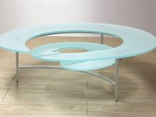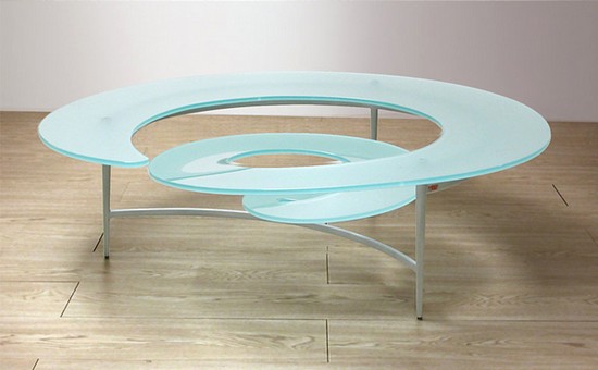 Coffee tables made of glass are very popular, the tops of which are made in the form of a spiral. The glass surface can be completely transparent or matte, light or dark shades. Very unusual models are also obtained when combining different materials, for example - the base of the table can be made of wood, and the upper part - of glass.