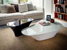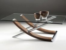 Glass coffee tables are very popular. And among the glass models you can also find a lot of original creative products, which are distinguished by the presence of abstract curves, corners, and elegant curls. They will harmoniously fit into modern interior designs.