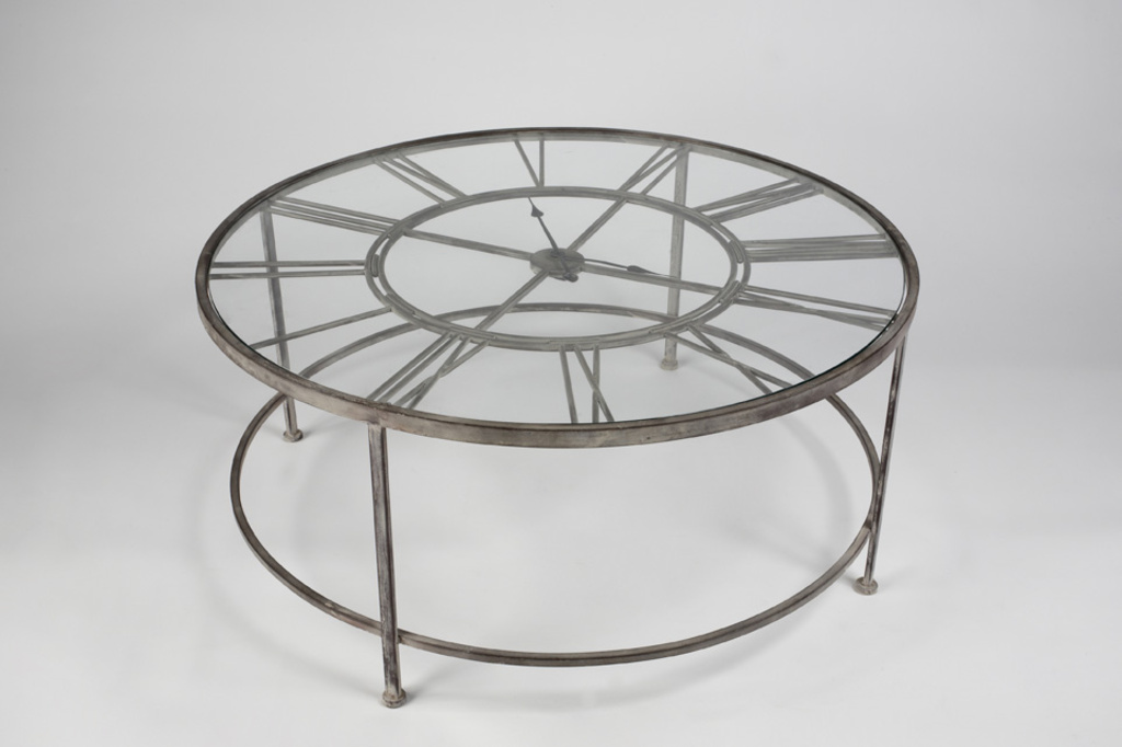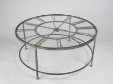 It looks interesting table, made in the form of hours - table top in the form of a dial of ancient times on wrought iron legs. Another ultra-modern design of the table is made in the form of a glass transparent cube, the surface of which serves as a table top, and inside the figure there is an entire composition on the maritime theme.