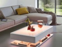 To the interior of your apartment was unusual and modern, you can use a variety of original ideas for the installation of coffee tables, their appearance, size and shape.