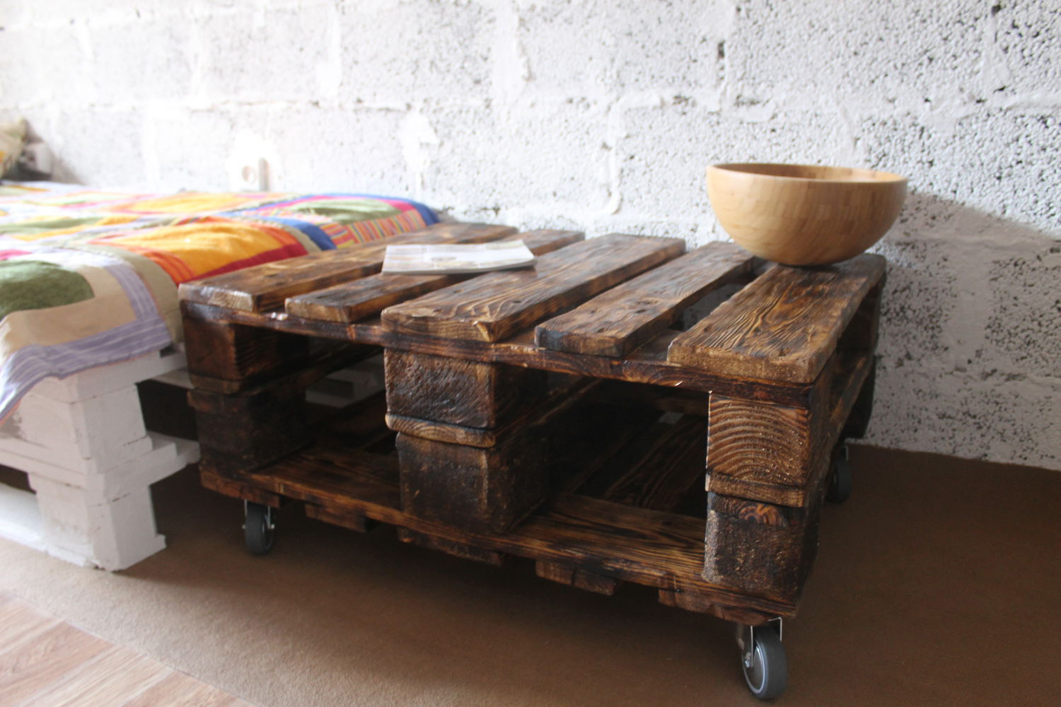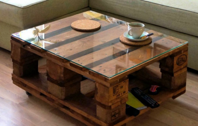 - Make a gorgeous coffee table from pallets is easy. It is enough only to process the surface with a stain, bolt two or three pallets and supply it with glass on top.