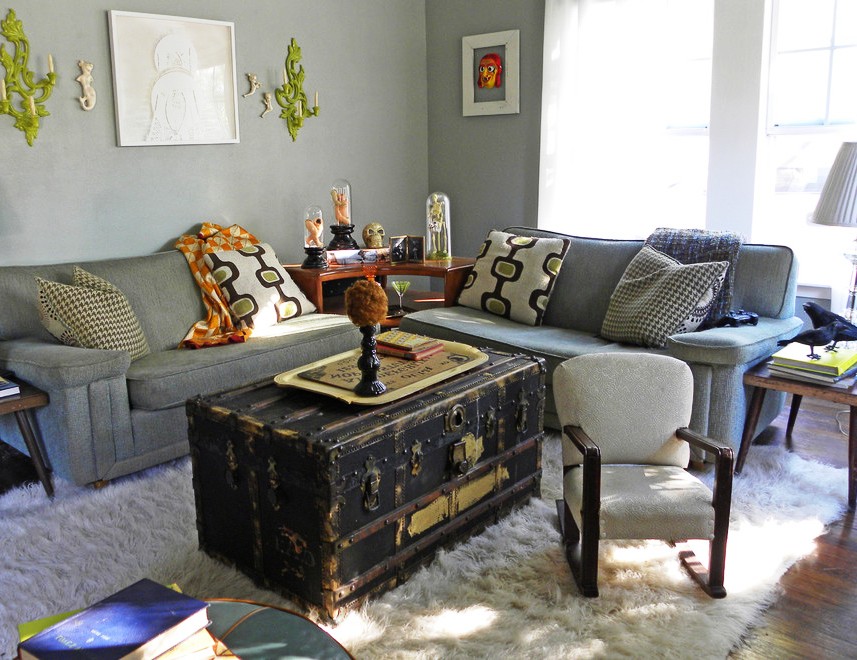 - Purchase or make yourself can be magnificent chest table. Made of wood or upholstered in leather, it will perfectly fit into the interior. A new chest is usually aged. You can also search the markets and specialized stores for real vintage models.