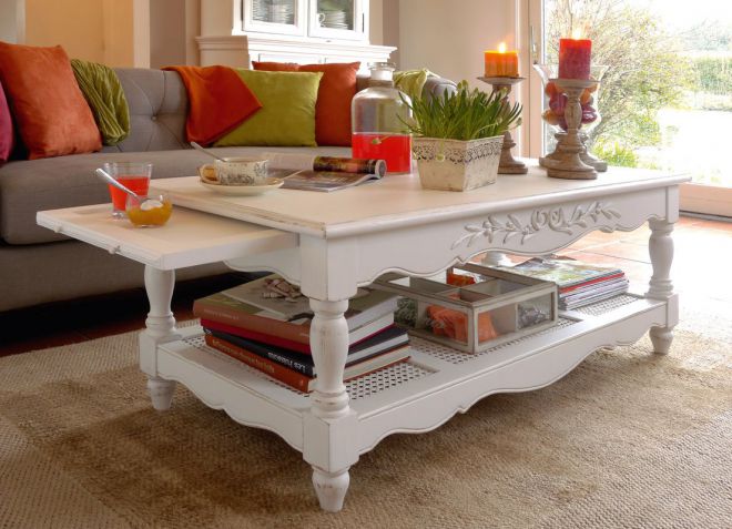 If you decide to decorate your home with a Provence-style coffee table, pay attention to a few important points. First, determine the color of the product. If you decide to follow only one direction, it is better to choose furniture in pastel colors.