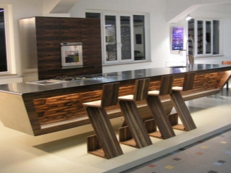 - Multifunctional. In some cases, it is not necessary to use ordinary chairs - they are fully capable of replacing height-adjustable bar stools. And the chairs with the possibility of rotation can not move;