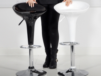 Legs (or support) - provide the whole structure sustainability. There are bar stools on four, three, one leg. One support in its lower part has a crosspiece or base, which in outline can repeat the seat.