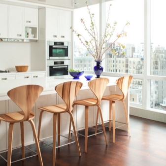 The bar counter is an integral element of the modern spacious kitchen. It is used both for its intended purpose, and as a place where you can drink a cup of tea or a snack, without serving the dining table. This is an alternative to a table in a small apartment, a zoning element in studio apartments, furniture is widely used in cafes. And in order to take a comfortable position behind such a design, you need a special chair.