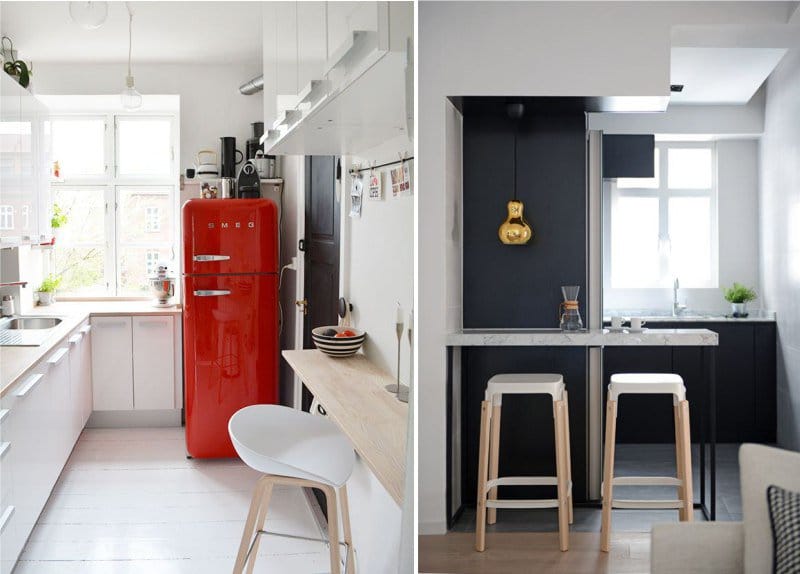 In small rooms, folding models will be the most acceptable option.They can be folded with the help of mechanisms or be collapsible. There are models in which only the back can fold - then they can be pushed under the tabletop.