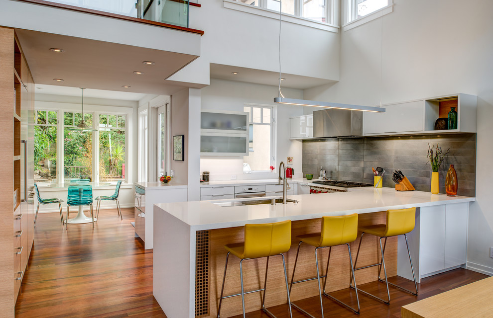 For example, if household appliances are located under the counter or there should be no abrupt differences between the levels of kitchen furniture. In this case, models of chairs will be more convenient. not with fixed, but with adjustable height: