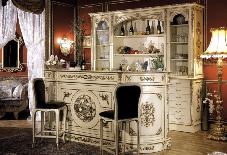 Rack in the form in which it is used in modern kitchens, appeared relatively recently. In the classical style, a special zone for drinks and pleasant entertainment will look more organic.