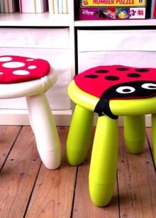 This is the real expanse for paints and toys, so the brighter the better. The back in the form of faces of animals, favorite characters on the seats, cars, dolls and other fun items will always be to their liking.A chair in the form of a fungus or a funny and wonderful monkey will surely arouse the interest of the baby.