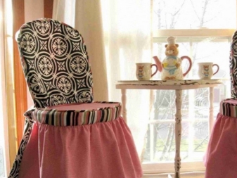 - Very interesting look covers for chairs from Ikea, combining several styles. A gentle veil with a cozy knitting or a universal cage, decorated with flounces will be a very unusual addition to the interior.