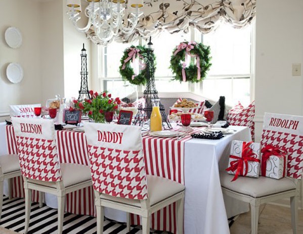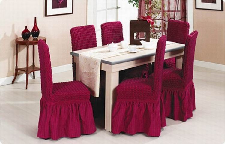 Do you want to beautifully destroy the myth that the kitchen covers on the chairs should be matched to the curtains or tablecloth? Try to match them with the color of the dishes! See how it will look spectacular and interesting.