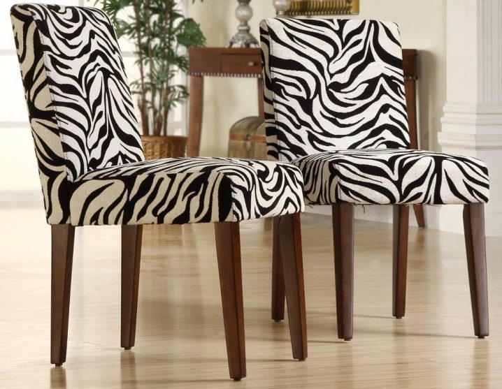 - Animal prints never go out of style. Therefore, chairs under the skin of animals and or fabric under the reptile will be a bold and original decision.