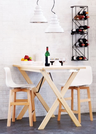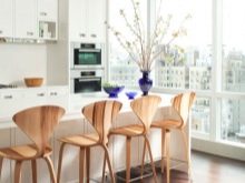 A simple interior will change if you replace the usual stools with bar stools of unusual shape.