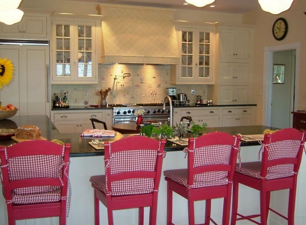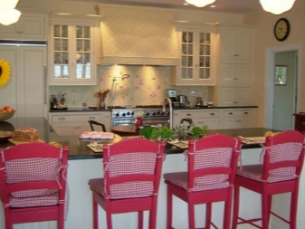 Add bright colors in the spirit of France. Pink color reflects the right mood. To make the seat softer will help fabric capes to match.