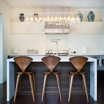 - Stool. High stool without back - the most common design bar stool. As a rule, they are ideal if you want to save space and prefer to hide the seats under the bar. Keep in mind that stools without a back is not the most convenient option if you and your guests sit on them for too long.