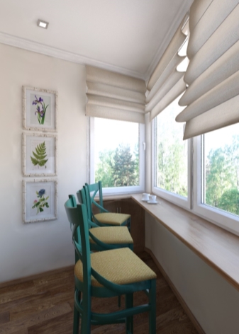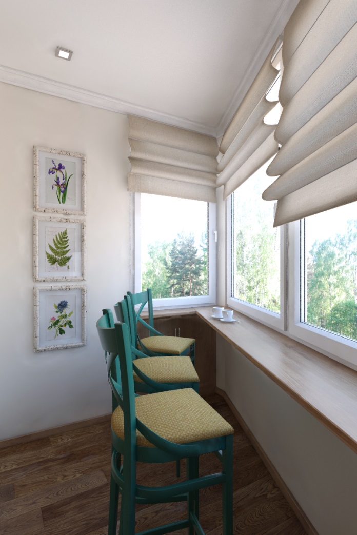 Place a few seats on the loggia, if its dimensions allow. Choose bright juicy shades of furniture to liven up the rest area.