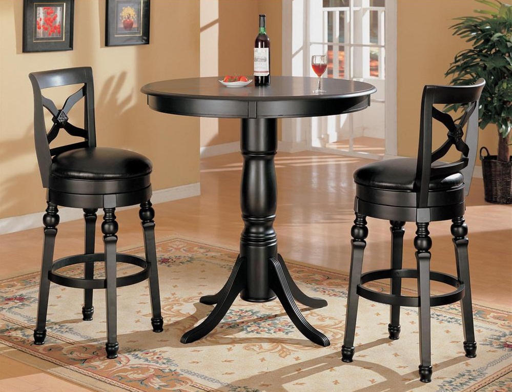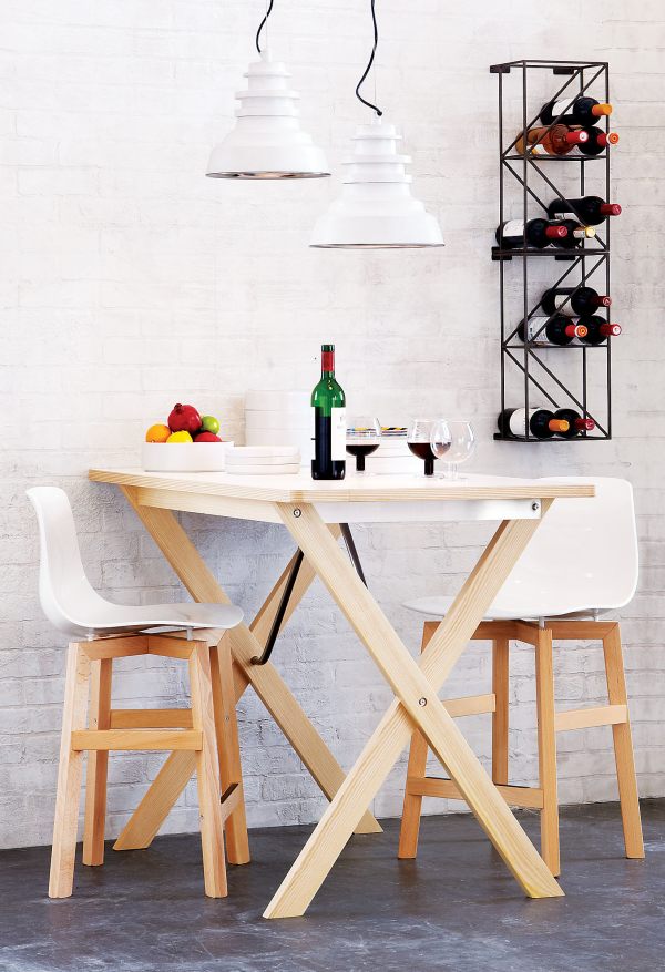 Arrange a cozy corner in the living room or dining room, where you can spend your evenings with a glass of wine in pleasant company. You will be helped by a high table and a couple of bar stools. Pay special attention to accessories.