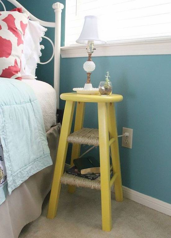 Use the bar stool as a bedside table in your bedroom. This is a fresh and practical solution for those who want to revive the interior.Choose colors to match other accessories in the room, or stop at a bright color, making it the main accent.