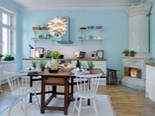 The design of the chairs may vary depending on their style. So, for more classic interiors, such as retro, Provence, an old light wooden chair is perfect. It can be vintage with artificially aged surfaces. Classic interiors are also decorated with models in the style of Khokhloma or Gzhel. They look very bright and colorful.