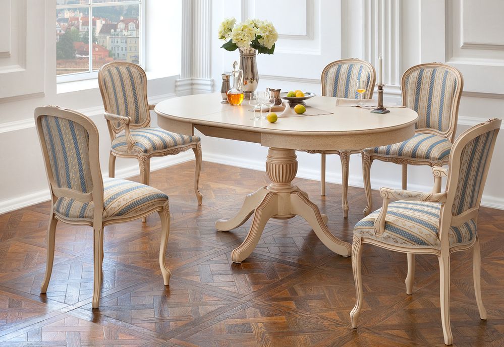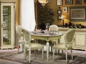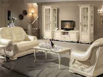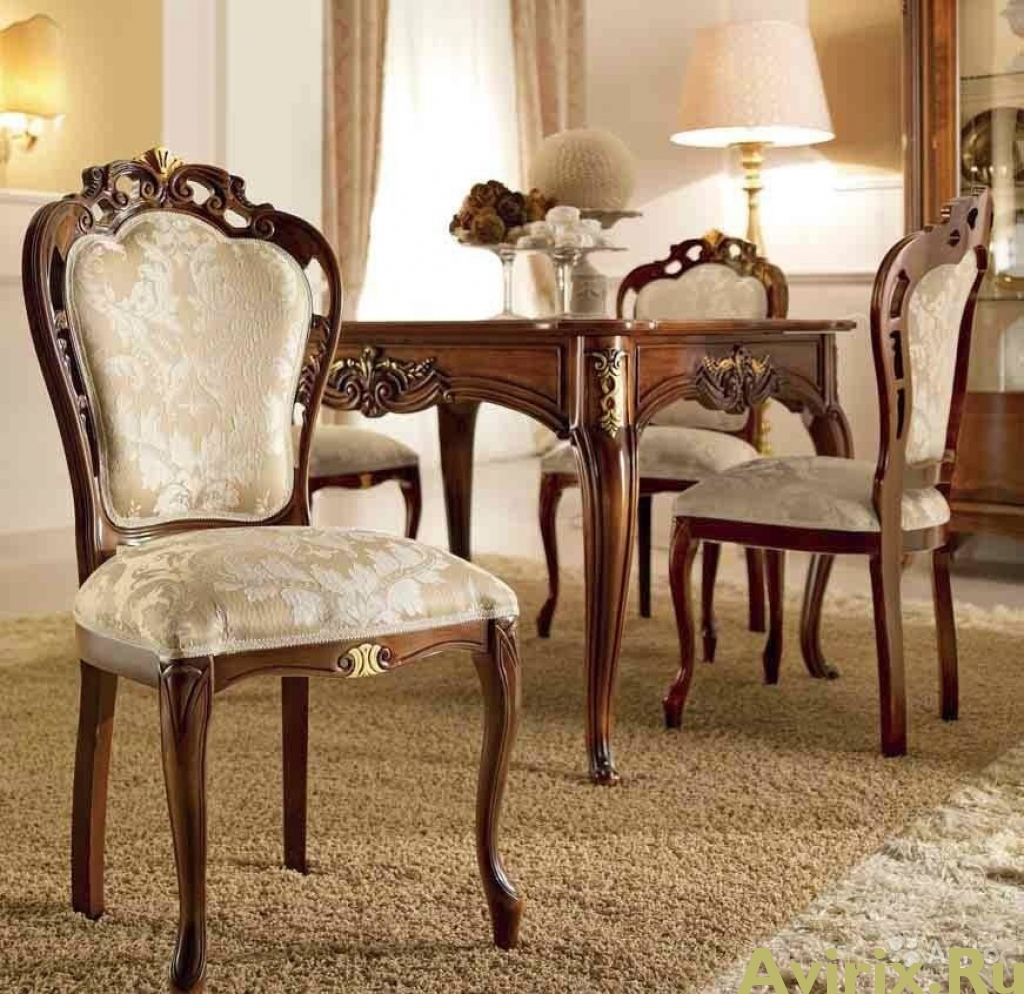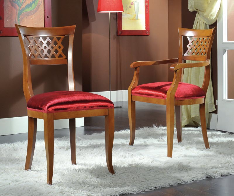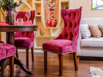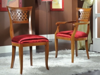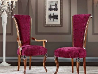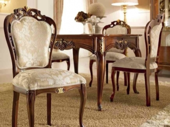 Most often they are made of wood, and they are more massive compared to other models. For the living room often get furniture with armrests, which also has soft elements. Living room chairs have a cushion on the seat, on the armrests and on the back. Such models are decorated with interesting patterns and carvings.