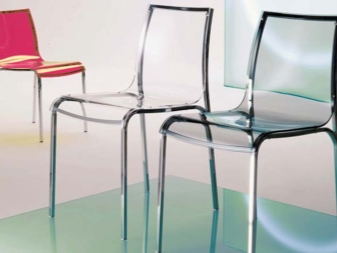 In the manufacture of chairs and glass used.Glass products are very rare and look quite unusual. The seat and back may be transparent. These are fragile and original models that need to be handled very carefully, despite the use of tempered glass.