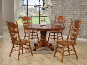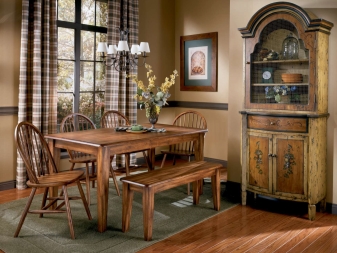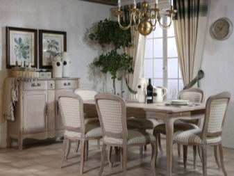 Chairs can also be made. in country style or in rustic style. Such models suggest the presence of untreated surfaces, as well as the use of natural materials such as wood, cotton, flax. As a rule, their upholstery in the seat and backrest has a rough, baggy texture. It is also typical of rustic style to use chairs with patchwork seats.